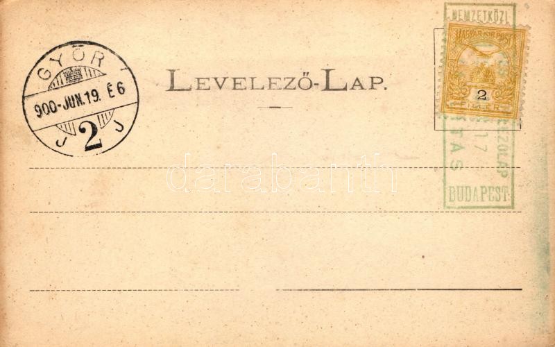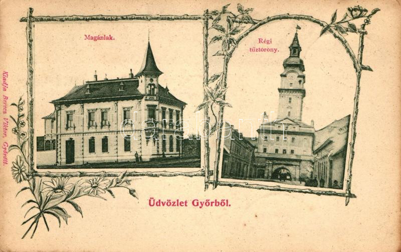 Beschreibung: Győr, Schlichter-villa és régi tűztorony; floral, kiadja Berecz Viktor