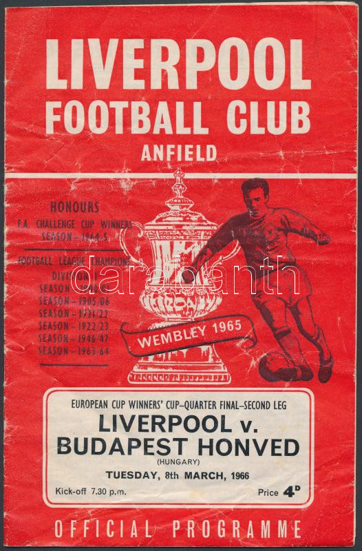 1966 Liverpool - Honvéd Európa Kupa negyeddöntő football mérkőzés mecc... https://www.darabanth.com/de/21-Gross-Auktion/21.1/Kunst-Dokumente/Drucksachen~7316/1966-Liverpool--Honved-Europa-Kupa-negyeddonto-football-merkozes-meccsfuzete-Football-mat~II1081189