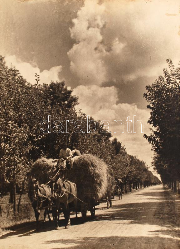cca 1940 Thöresz Dezső (1902-1963): Szénás szekér, jelzés nélküli, feliratozott vintage fotóművészeti alkotás, a szerző hagyatékából, 39x29 cm, karton 50x46 cm