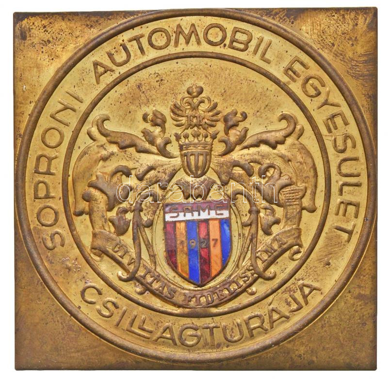 Hungary 1927. "Sopron Automobil Association Tour 1927." gold plated, enamelled Cu plaque (66,5x66,5mm) C:VF enamel slightly damaged