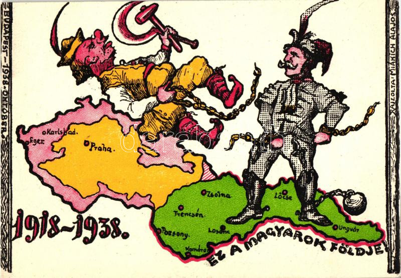1918-1938 Ez a Magyarok Földje! Csehszlovákia- és bolsevizmus ellenes irredenta lap / Anti-Czech and Anti-Bolshevist propaganda, Hungary, irredenta s: Miákich Alajos 'Ipolyság - az első visszatért magyar város' So. Stpl