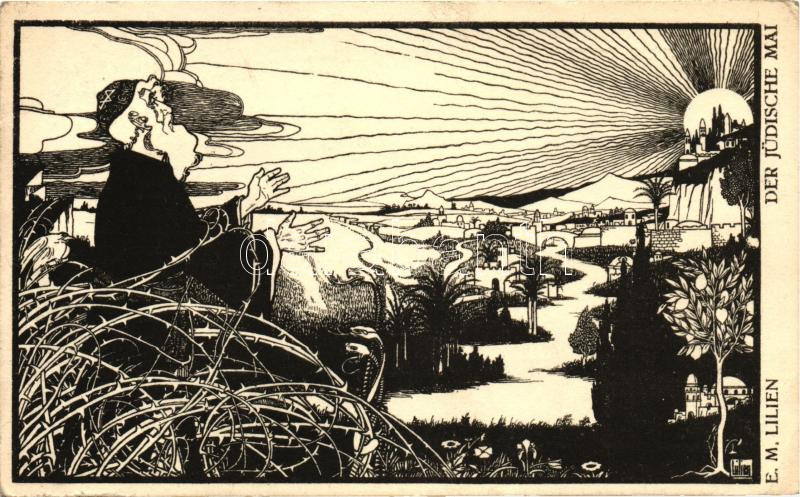 Beschreibung: Der jüdische Mai; Lieder der Ghetto, Verlag B. Harz / Jewish art postcard, Judaica s: Ephraim Moses Lilien