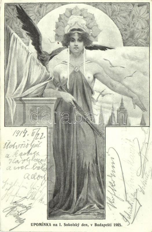 Beschreibung: 1905 Upomínka na I. Sokolsky den v Budapesti / First Sokol meeting in Budapest; Art Nouveau