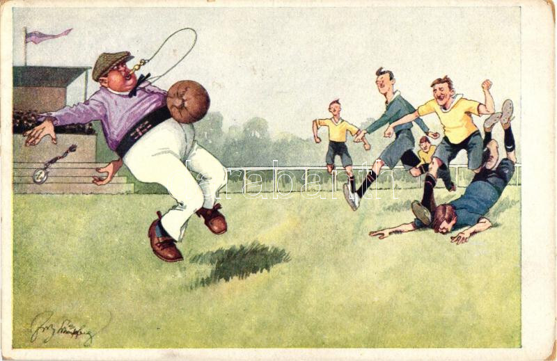 Football match, humour B.K.W.I. 228-5. s: Schönpflug https://www.darabanth.com/de/21-Gross-Auktion/21.1/Thematik-und-Kunstlerkarten/Sport~7478/Football-match-humour-BKWI-228-5-s-Schonpflug~II1066876