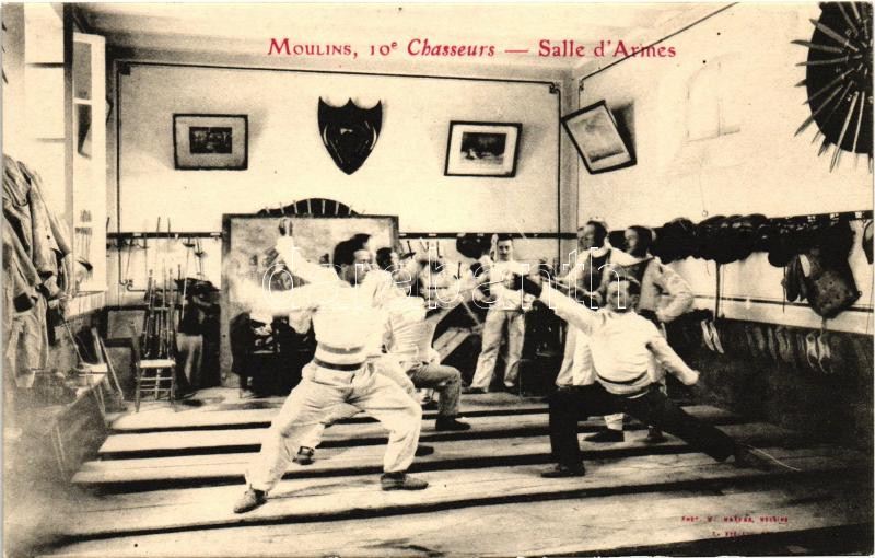Moulins, 10e Chasseurs - Salle d'Armes / French fencing room interior https://www.darabanth.com/de/21-Gross-Auktion/21.1/Thematik-und-Kunstlerkarten/Sport~7478/Moulins-10e-Chasseurs--Salle-dArmes-French-fencing-room-interior~II1072101