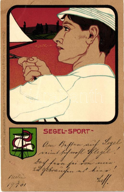 Beschreibung: Segel-Sport. Turnfest, Leipzig, Meissner & Buch Künstler-Postkarten Serie No. 1070 'Deutscher Sport' / sailing, German art postcard