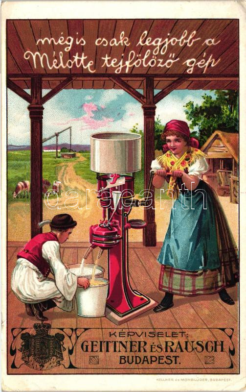 Mélotte tejfölöző gép reklám, képviselet: Geittner és Rausch, Budapest... https://www.darabanth.com/de/21-Gross-Auktion/21.1/Thematik-und-Kunstlerkarten/Werbungen~7474/Melotte-tejfolozo-gep-reklam-kepviselet-Geittner-es-Rausch-Budapest-milk-skimming-machi~II1085236