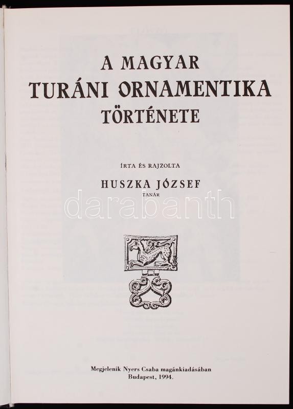 Huszka József: A magyar turáni ornamentika története. Bp., 1994, Nyers... https://www.darabanth.com/de/210-Fernauktion/210.0/Andere-Sammelgebiete/Bucher-Architektur-Kunst~600035/Huszka-Jozsef-A-magyar-turani-ornamentika-tortenete-Bp-1994-Nyers-Csaba-Kiadoi-aranyozott~II864623