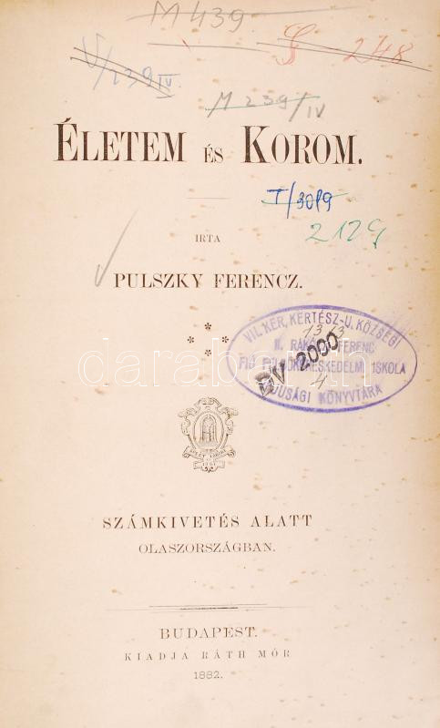 Bp.,... https://www.darabanth.com/de/210-Fernauktion/210.0/Andere-Sammelgebiete/Bucher-Geschichte~600045/Pulszky-Ferenc-Eletem-es-korom-Szamkivetes-alatt-Olaszorszagban-3Cbr3EBp-1882-Rath-Mor-K~II868920
