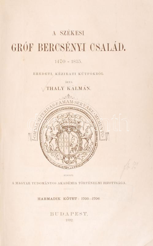 Thaly Kálmán: A székesi gróf Bercsényi család. 1525-1835. 3. köt. Bp. ... https://www.darabanth.com/de/210-Fernauktion/210.0/Andere-Sammelgebiete/Bucher-Geschichte~600045/Thaly-Kalman-A-szekesi-grof-Bercsenyi-csalad-1525-1835-3-kot-Bp-1892-MTA-824-p-Korab~II868921
