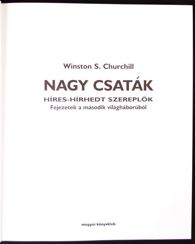 Churchill, Winston S.: Nagy csaták, Híres-hírhedt szereplők, Fejezetek a második világháborúból. Bp., 1999, Magyar Könyvklub. Kiadói kartonált kötés védőborítóval, rengeteg fotóval illusztrált, újszerű állapotban.