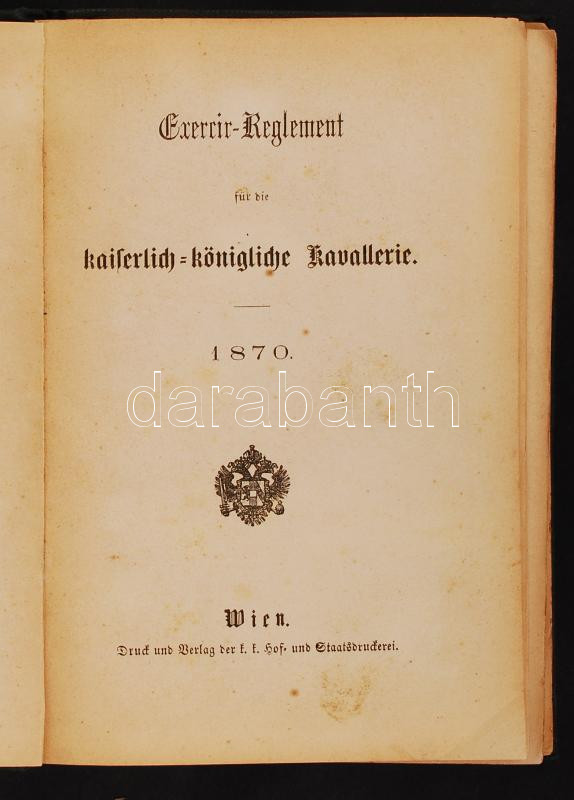 Exercir-Reglement für die kaiserlich-königliche Kavallerie. Wien, 1870, Druck und Verlag der k.k. Hof- und Staatdruckerei. EGészvászon kötés, kissé kopottas állapotban.