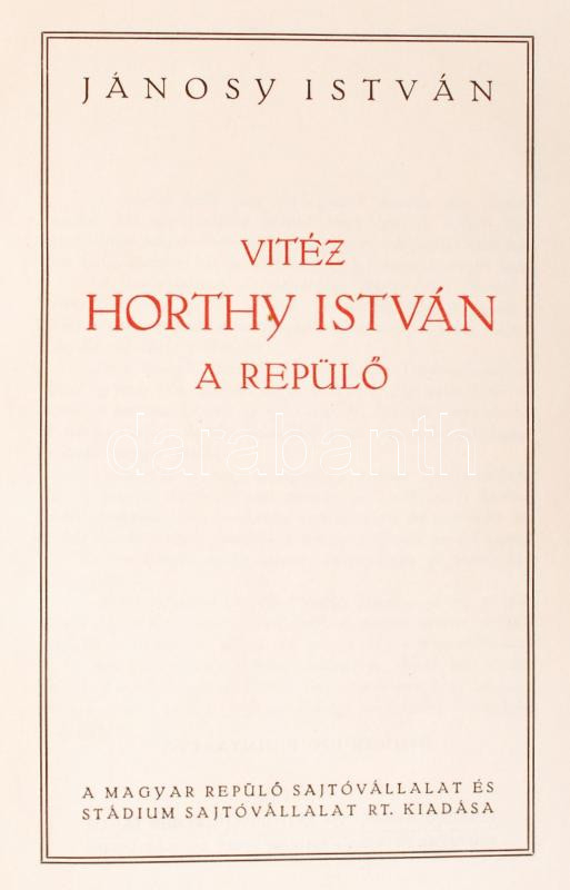 Bp. é.n. Magyar Repülő Sa... https://www.darabanth.com/de/210-Fernauktion/210.0/Andere-Sammelgebiete/Bucher-Militaria~600029/Janosy-Istvan-Vitez-Horthy-Istvan-a-repulo-3Cbr3EBp-en-Magyar-Repulo-Sajtovallalat-23~II868521