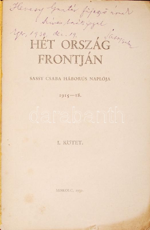 Sassy Csaba: Hét ország frontján. - - háborús nap-lója. I. kötet. Dedikált!