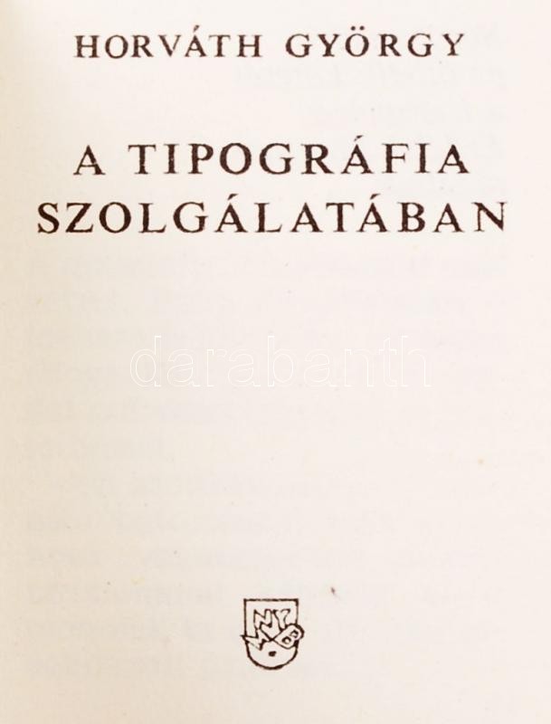 Horváth György: A tipográfia szolgálatában. A nyomdászat dicsérete 5. ... https://www.darabanth.com/de/210-Fernauktion/210.0/Andere-Sammelgebiete/Bucher-Minibucher~600037/Horvath-Gyorgy-A-tipografia-szolgalataban-A-nyomdaszat-dicserete-5-Minikonyv-szamozott-~II819805