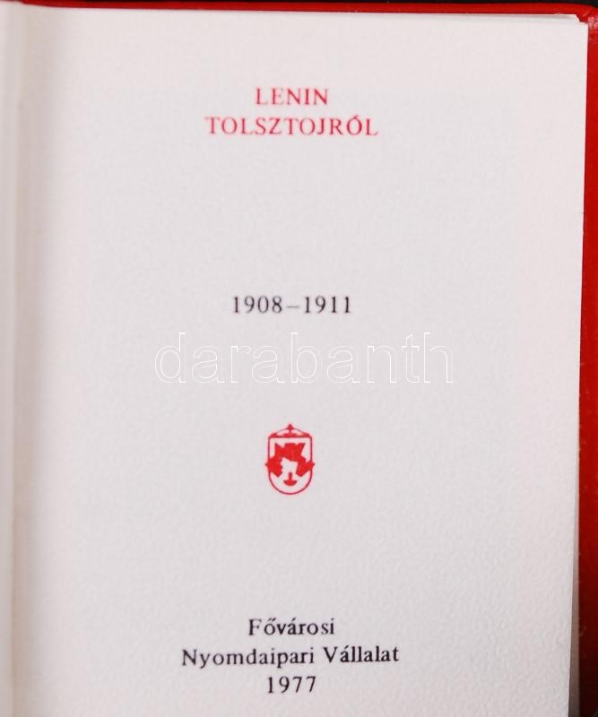 Lenin: Tolsztojról. Bp., 1977, Fővárosi Nyomdaipari Vállalat. Miniköny... https://www.darabanth.com/de/210-Fernauktion/210.0/Andere-Sammelgebiete/Bucher-Minibucher~600037/Lenin-Tolsztojrol-Bp-1977-Fovarosi-Nyomdaipari-Vallalat-Minikonyv-kiadoi-mubor-kote~II819538