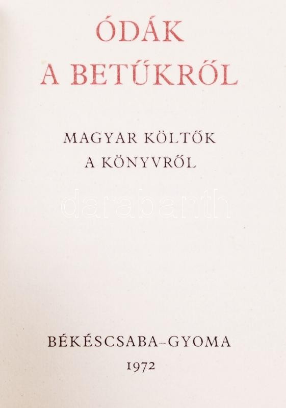 Ódák a betűkről. Magyar költők a könyvről. Békéscsaba-Gyoma, 1972, Kne... https://www.darabanth.com/de/210-Fernauktion/210.0/Andere-Sammelgebiete/Bucher-Minibucher~600037/Odak-a-betukrol-Magyar-koltok-a-konyvrol-Bekescsaba-Gyoma-1972-Kner-Nyomda-Minikonyv~II819885