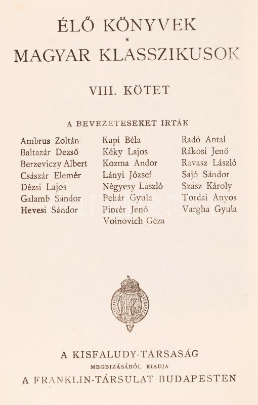 Beschreibung: Élő Könyvek: Magyar Klasszikusok I-XL. kötet) Bp., é.n., Kisfaludy-Társaság - Franklin-Társulat. Kiadói aranyozott egészvászon sorozatkötésben, jó állapotban ( 3 kötet hiányzik)