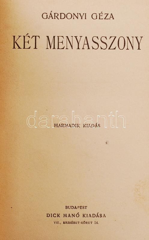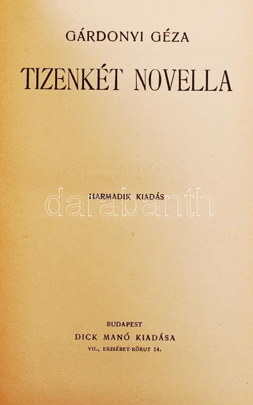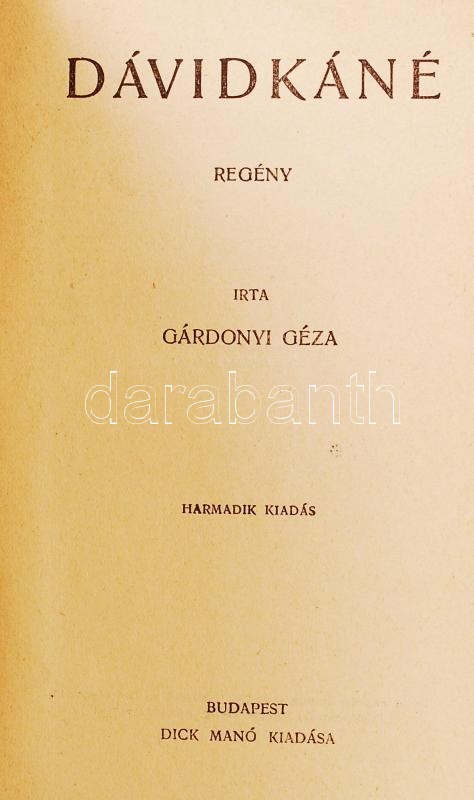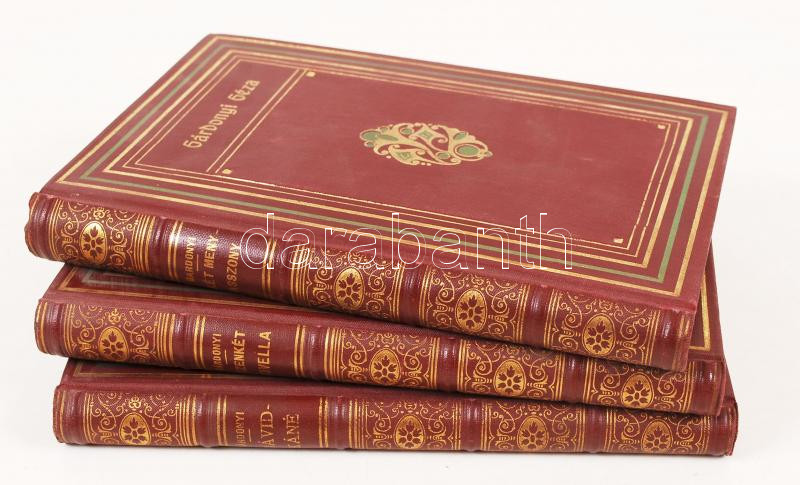 Gárdonyi Géza munkái sorozat 3 kötete: Dávidkáné, Tizenkét novella, Két menyasszony. Mindegyik kötet sorszámozott. Bp., Dick Manó, Aranyozott egészvászon kötésben