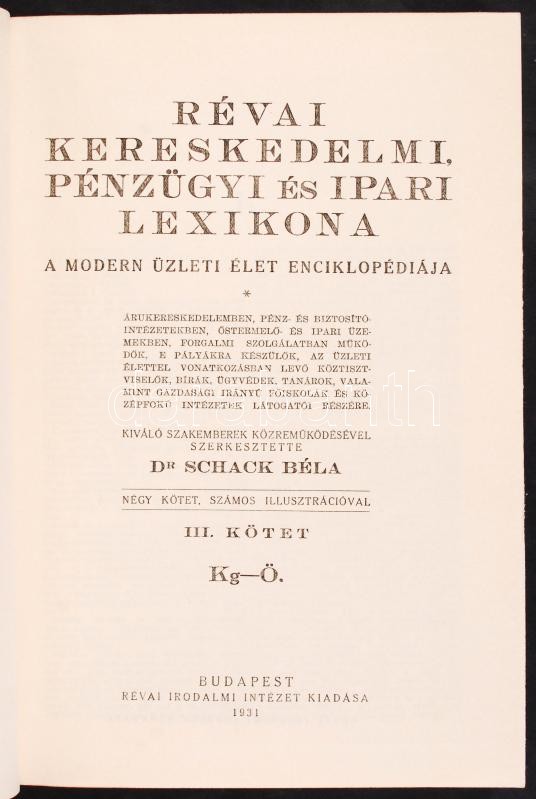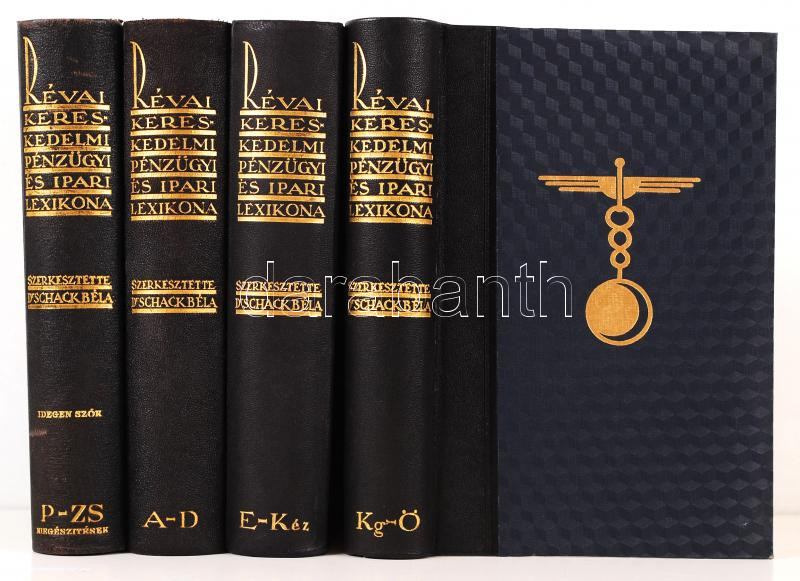 Schack Béla(szerk.): Révai kereskedelmi, pénzügyi és ipari lexikona I-IV. kötet. A modern üzleti élet enciklopédiája. Bp., 1929-1931. Kiadói aranyozott gerincű félbőr kötés, festett lapszélek, nagyon szép állapotban.