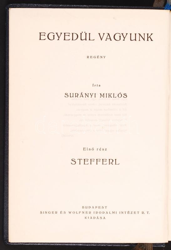 Surányi Miklós: Egyedül vagyunk. Bp., 1936, Singer és Wolfner, Corvina... https://www.darabanth.com/de/210-Fernauktion/210.0/Andere-Sammelgebiete/Bucher-Sonstige-Raritaten~600038/Suranyi-Miklos-Egyedul-vagyunk-Bp-1936-Singer-es-Wolfner-Corvina-Konyvkoteszet-Kiadoi~II846852