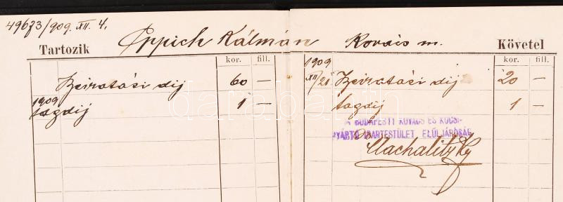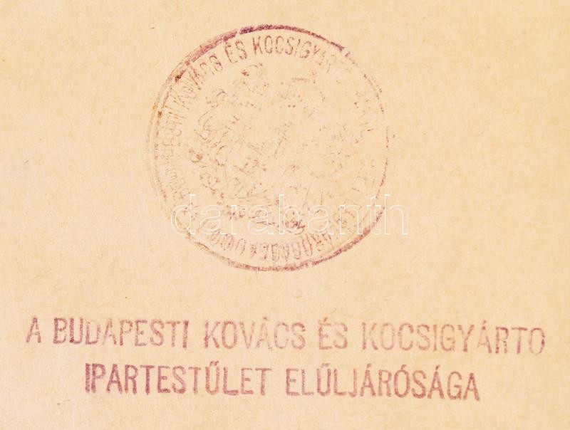 1909 A Budapesti Kovács és Kocsigyártó Ipartestület tagsági díj könyve... https://www.darabanth.com/de/210-Fernauktion/210.0/Andere-Sammelgebiete/Dokument~600015/1909-A-Budapesti-Kovacs-es-Kocsigyarto-Ipartestulet-tagsagi-dij-konyvecskeje~II865804