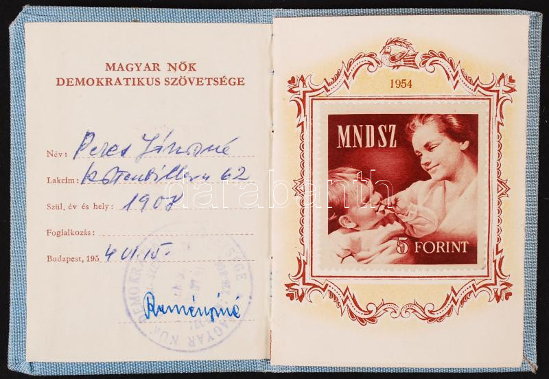 1954 Magyar Nők Demokratikus Szövetségének tagsági könyve benne szép t... https://www.darabanth.com/de/210-Fernauktion/210.0/Andere-Sammelgebiete/Dokument~600015/1954-Magyar-Nok-Demokratikus-Szovetsegenek-tagsagi-konyve-benne-szep-tagdijbelyegekkel~II864514