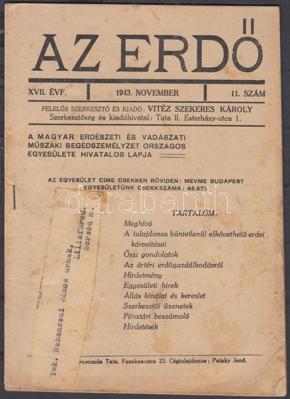 1943 Az Erdő A Magyar Erdészeti és Vadászati Műszaki Segédszemélyzet O... https://www.darabanth.com/de/210-Fernauktion/210.0/Andere-Sammelgebiete/Drucksachen~600026/1943-Az-Erdo-A-Magyar-Erdeszeti-es-Vadaszati-Muszaki-Segedszemelyzet-Orszagos-Egyesulete-hi~II852566