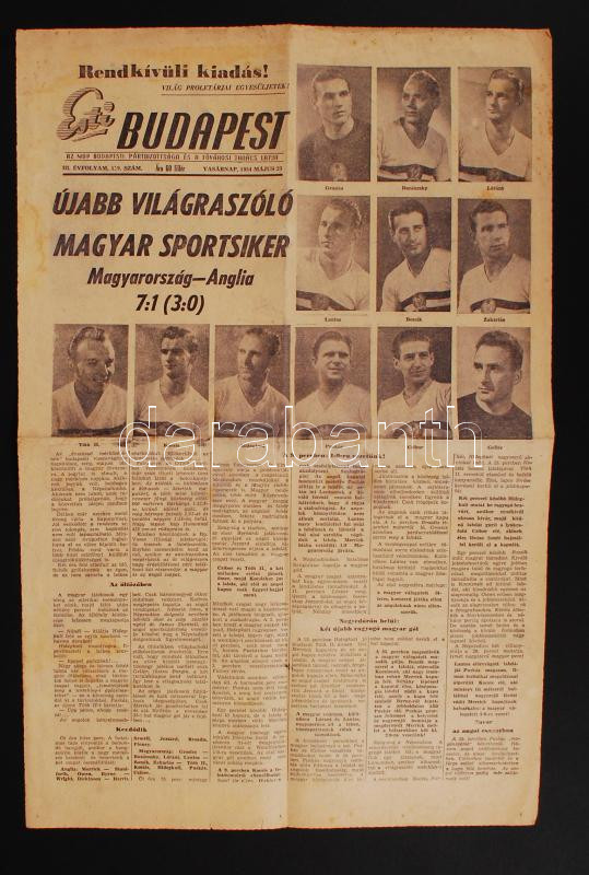1954 Esti Budapest rendkívüli különkiadása: Újabb világraszóló magyar ... https://www.darabanth.com/de/210-Fernauktion/210.0/Andere-Sammelgebiete/Drucksachen~600026/1954-Esti-Budapest-rendkivuli-kulonkiadasa-Ujabb-vilagraszolo-magyar-sportsiker-Magyarors~II864351