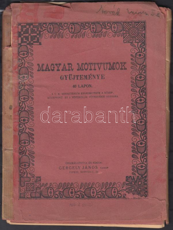Gergely János: Magyar motívumok gyűjteménye 40 lapon. Album 40 lappal. https://www.darabanth.com/de/210-Fernauktion/210.0/Andere-Sammelgebiete/Drucksachen~600026/Gergely-Janos-Magyar-motivumok-gyujtemenye-40-lapon-Album-40-lappal~II868779