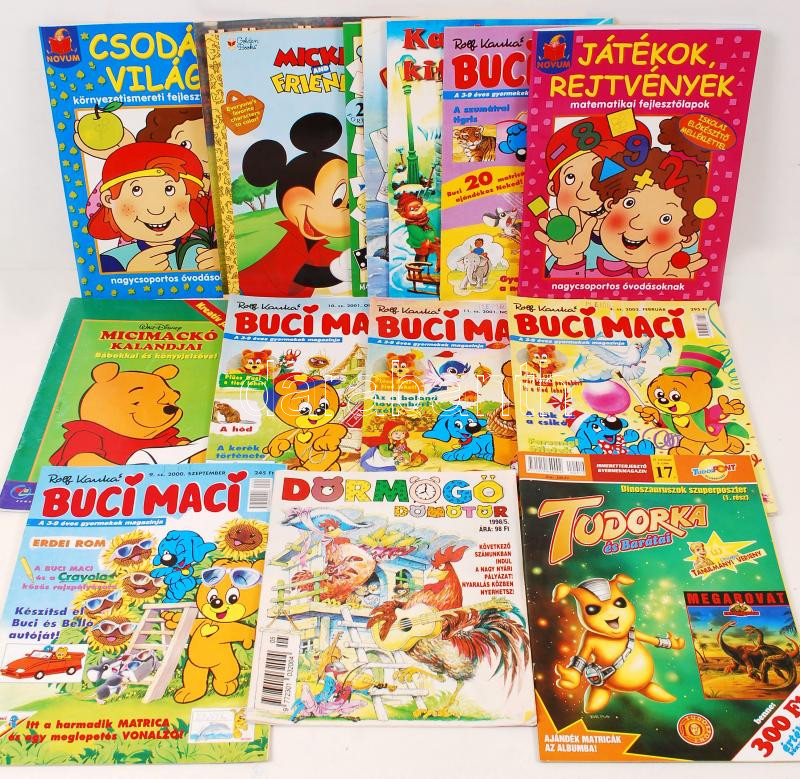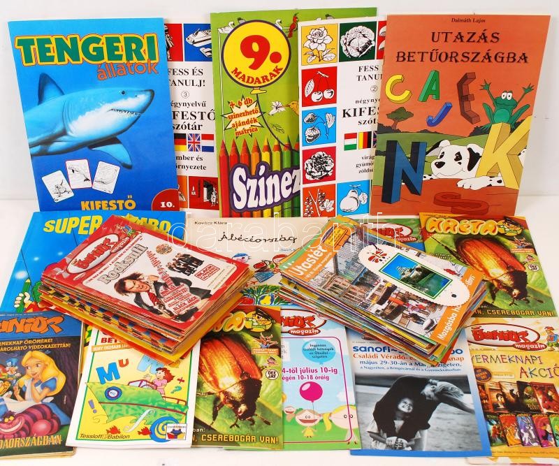 Beschreibung: Gyermekkönyvek, folyóiratok, kifestők nagy mennyiségben, kb. 70 darab