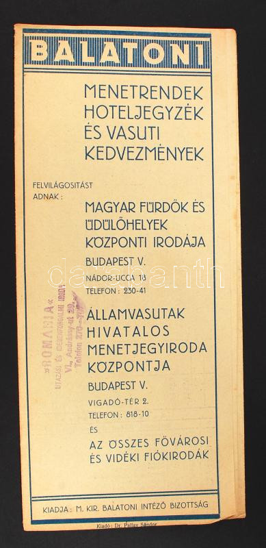 cca 1920-1930 Balatoni menetrendek, hoteljegyzék és vasúti kedvezménye... https://www.darabanth.com/de/210-Fernauktion/210.0/Andere-Sammelgebiete/Drucksachen~600026/cca-1920-1930-Balatoni-menetrendek-hoteljegyzek-es-vasuti-kedvezmenyek-tajekoztato-fuzet~II868153
