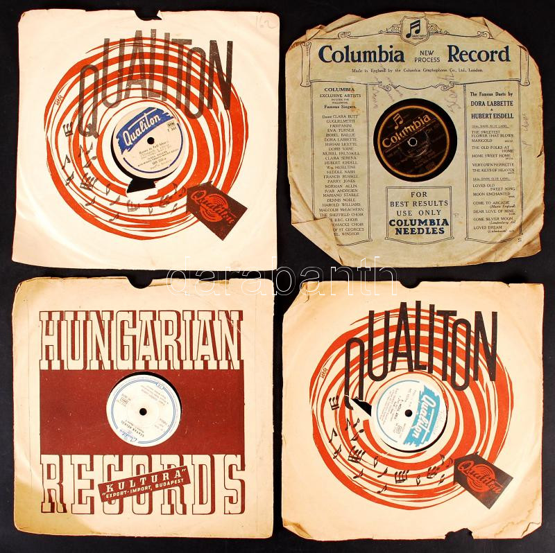 Beschreibung: 4 db század eleji bakelit hanglemez eredeti tokban