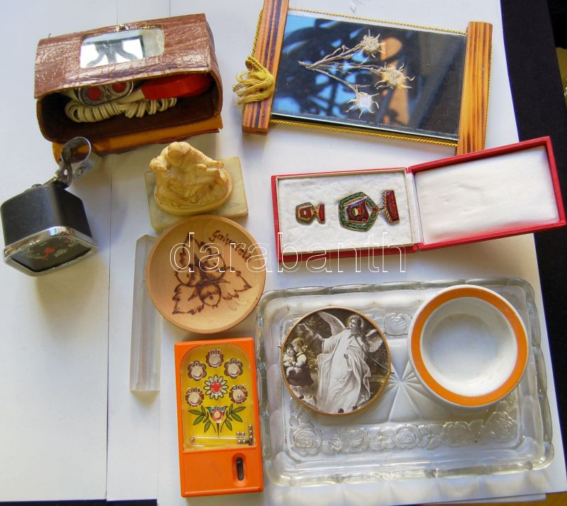 Beschreibung: Kis bolhapiac tétel: kitüntetés, kilométeróra, fa kis tál, üvegtálca, villanyborotva, stb.