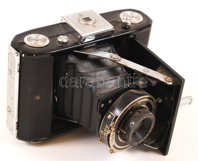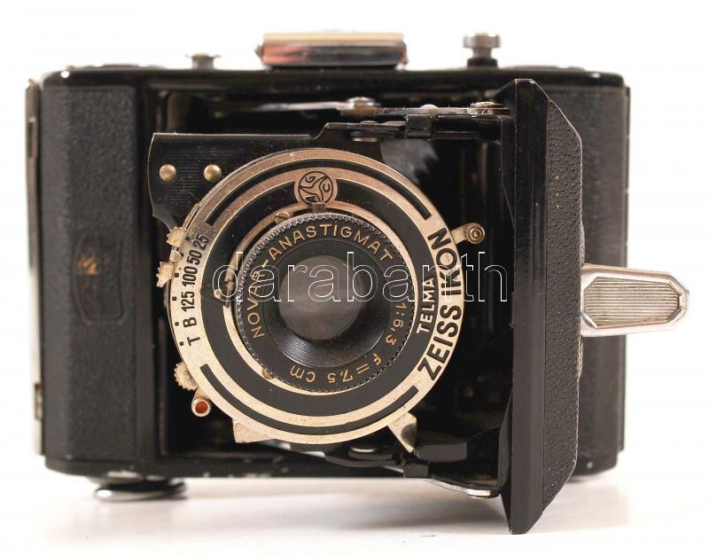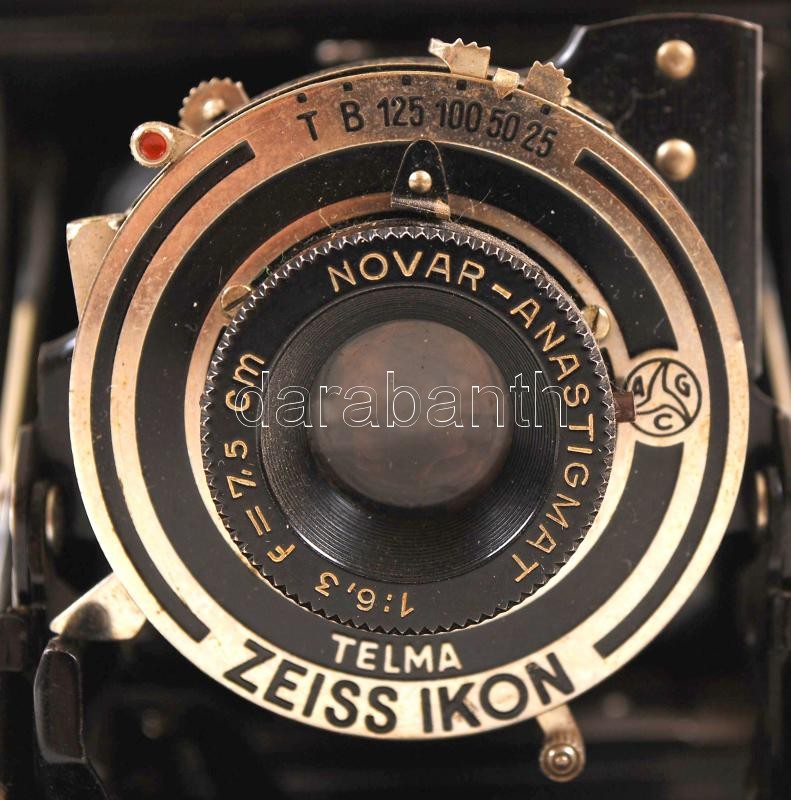 cca 1930 Zeiss Ikon Telma típusú harmonikás fényképezőgép Novar-Anastigmat f4.5/75mm objektívvel eredeti bőrtokban, Jó állapotban /