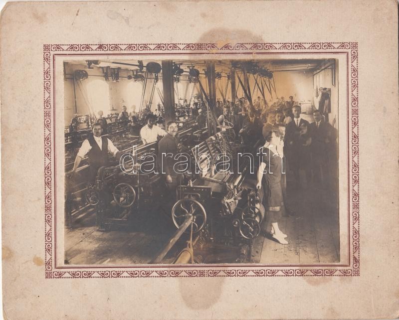 1923 Debrecen, Első Debreceni Textilgyár Részvénytársaság, az üzem és dolgozói, 3 db fotó kartonra kasírozva, feliratozva, fotó 17x12 cm, karton 25x20 cm