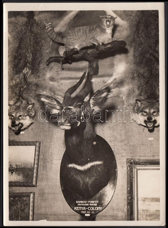 1934 gróf Széchenyi Zsigmond (1898-1967) afrikai trófeái vadászati kiá... https://www.darabanth.com/de/210-Fernauktion/210.0/Andere-Sammelgebiete/Foto~600018/1934-grof-Szechenyi-Zsigmond-1898-1967-afrikai-trofeai-vadaszati-kiallitason-hatoldalan~II864534