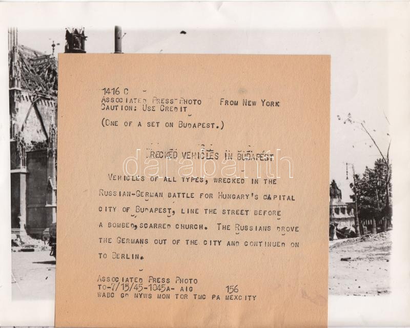 1945 A szétrombolt Mátyás-templom, angol szöveggel, pecséttel jelzett,... https://www.darabanth.com/de/210-Fernauktion/210.0/Andere-Sammelgebiete/Foto~600018/1945-A-szetrombolt-Matyas-templom-angol-szoveggel-pecsettel-jelzett-23x18-cm~II868224