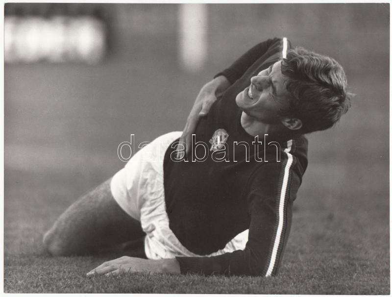 1975 Farkas József: Török Péter válogatott labdarugó, sportfotó, jelzetlen, bemutatva a Magyarország ma című fotókiállításon 1975-ben, a Magyar Munkásmozgalmi Múzeumban, 18x24 cm