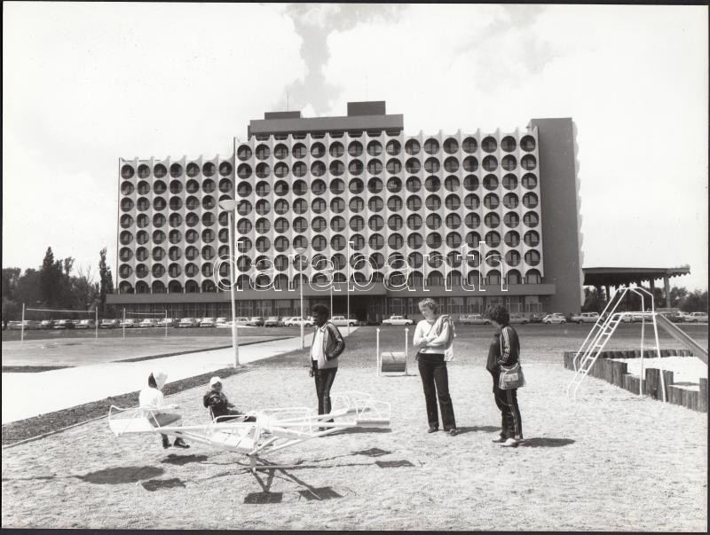 Beschreibung: 1984 Balatonszéplakon megnyílt a SZOT legújabb üdülője, feliratozva, 18x24 cm