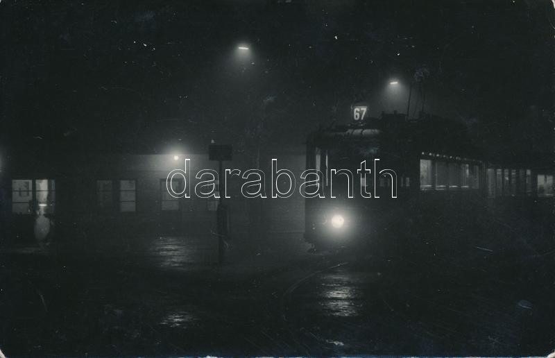 Beschreibung: A 67-es villamos végállomása sötétben, 14x9 cm