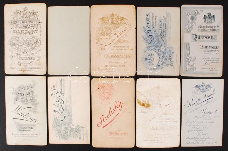 Beschreibung: cca 1870-1900 10 db klf keményhátú fotó különböző magyar fényképészek műterméből 7x9 cm