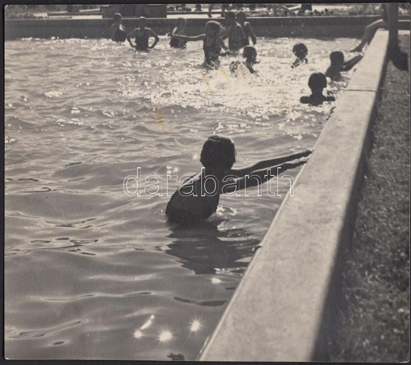 Beschreibung: cca 1930-1940 Tábor Viktor: 40 fok melegben, feliratozott vintage életkép a strandról, felületén néhány világosbarna folt, 21x24 cm