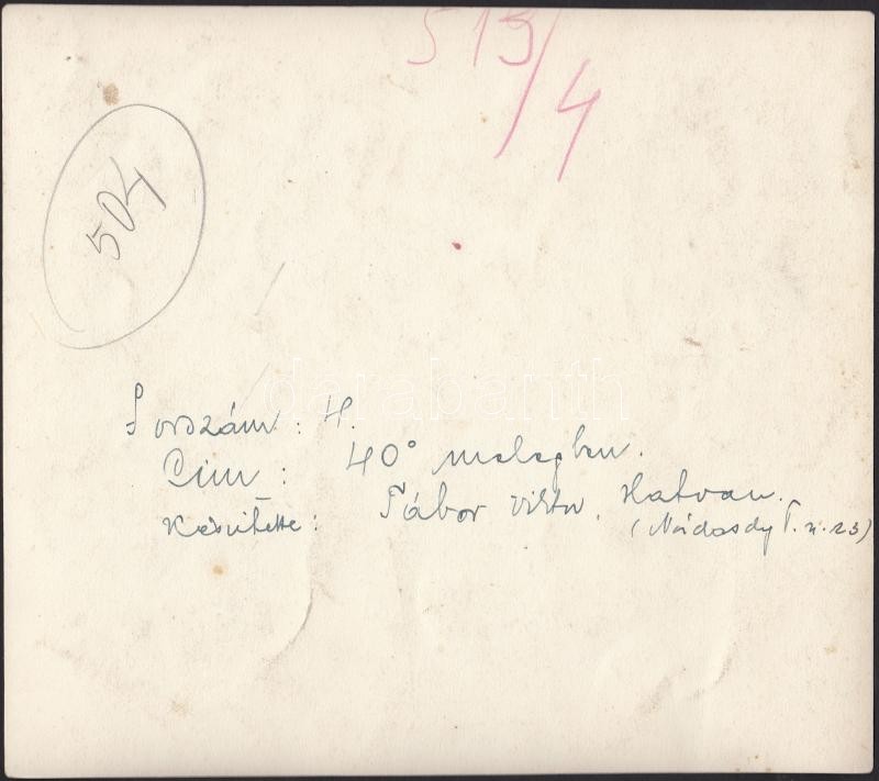 cca 1930-1940 Tábor Viktor: 40 fok melegben, feliratozott vintage élet... https://www.darabanth.com/de/210-Fernauktion/210.0/Andere-Sammelgebiete/Foto~600018/cca-1930-1940-Tabor-Viktor-40-fok-melegben-feliratozott-vintage-eletkep-a-strandrol-feluletC3~II861854