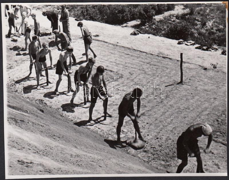cca 1950-1960 Gát- és útépítő fiatalok, 8x11 cm https://www.darabanth.com/de/210-Fernauktion/210.0/Andere-Sammelgebiete/Foto~600018/cca-1950-1960-Gat-es-utepito-fiatalok-8x11-cm~II861829