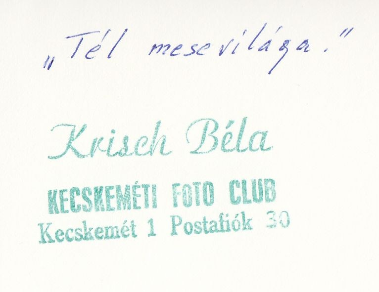 cca 1955 Krisch Béla: A tél mesevilága, pecséttel jelzett vintage fotó... https://www.darabanth.com/de/210-Fernauktion/210.0/Andere-Sammelgebiete/Foto~600018/cca-1955-Krisch-Bela-A-tel-mesevilaga-pecsettel-jelzett-vintage-fotomuveszeti-alkotas-17x~II863582