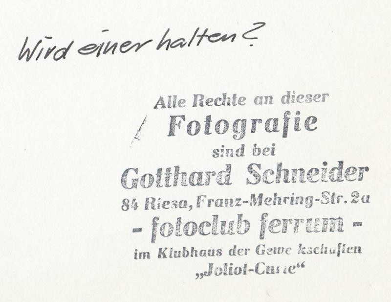 cca 1970-1980 Gotthard Schneider: Wird einer halten?, pecséttel jelzet... https://www.darabanth.com/de/210-Fernauktion/210.0/Andere-Sammelgebiete/Foto~600018/cca-1970-1980-Gotthard-Schneider-Wird-einer-halten-pecsettel-jelzett-vintage-foto-17x22-cm~II863407