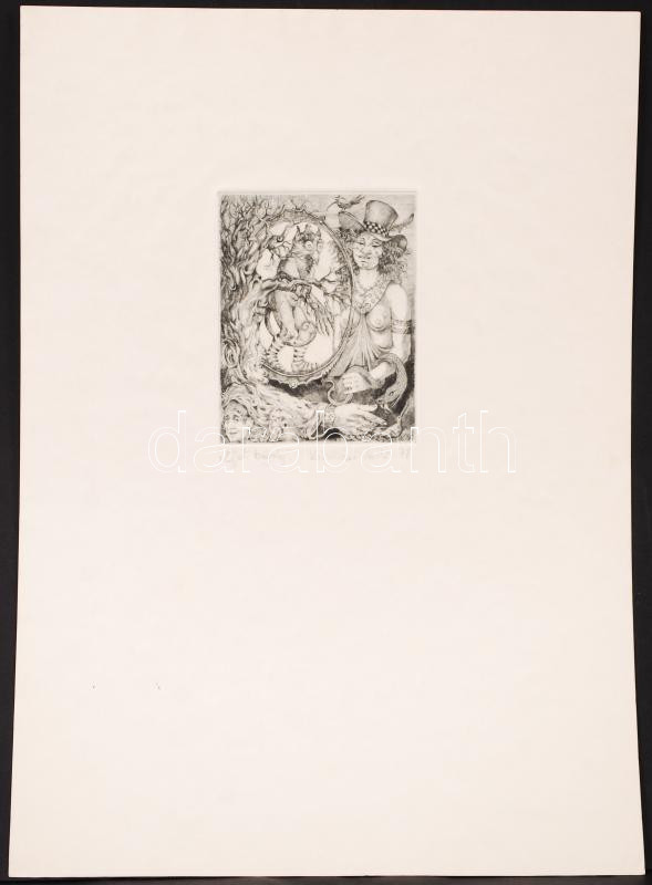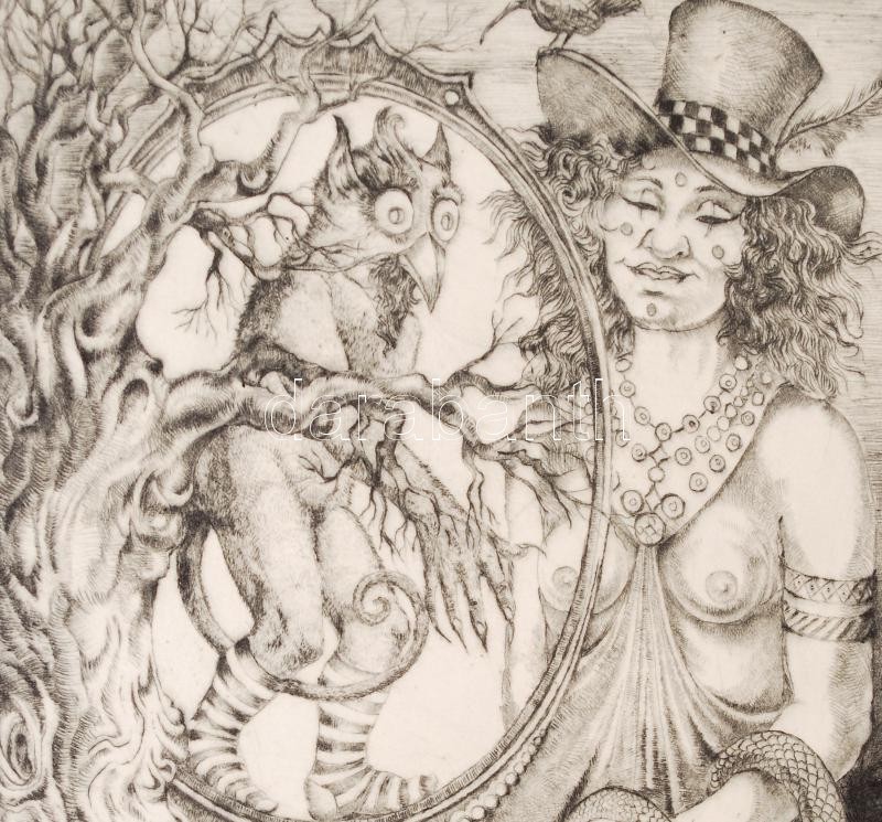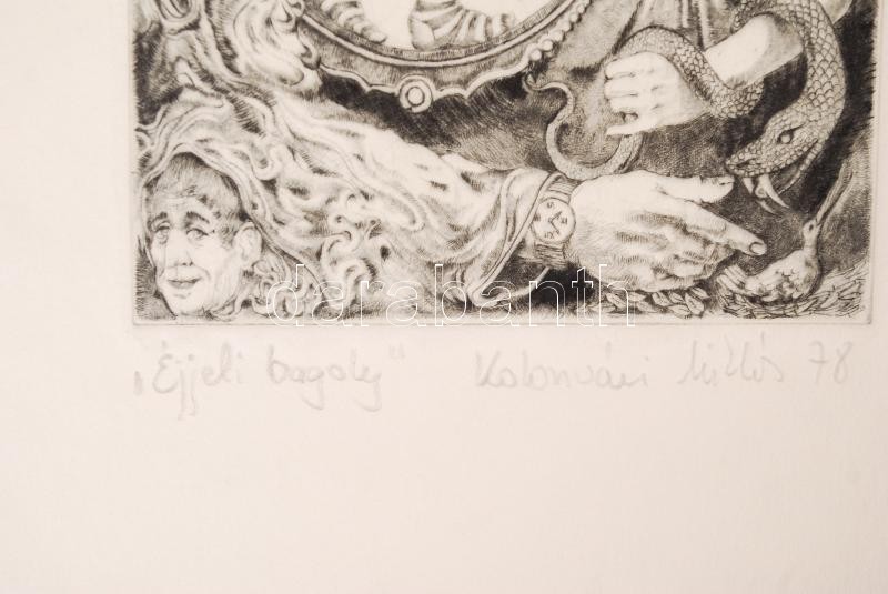 Beschreibung: Kolozsvári G. Miklós (1950-): Éjjeli bagoly. Rézkarc, papír, jelzett, 12,5×10 cm