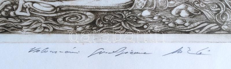Beschreibung: Kolozsvári Grandpierre Miklós (1950-): Tükröm, tükröm. Rézkarc, papír, jelzett, üvegezett keretben, 29×38 cm