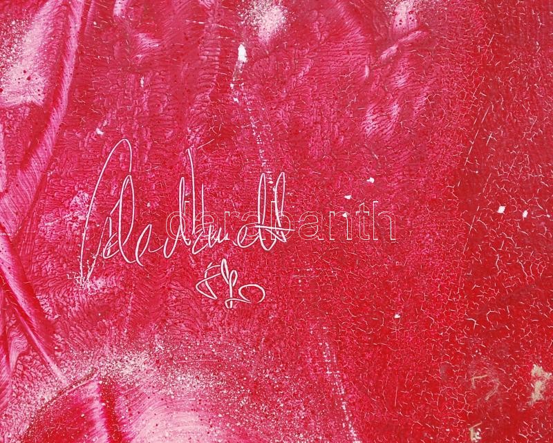 Beschreibung: Olvashatatlan jelzéssel: Látomás az otthonról. Vegyes technika, farost, sérült, keretben 40×70 cm